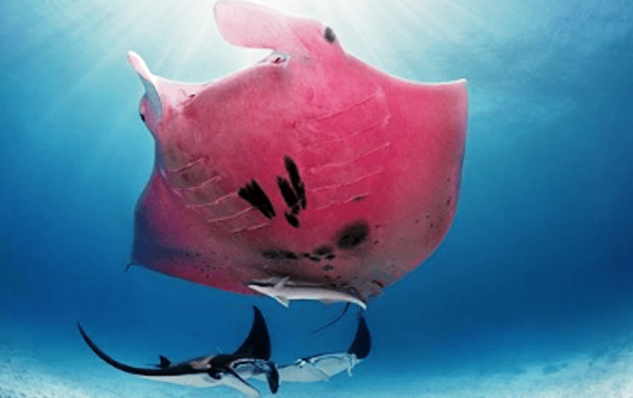 Un fotógrafo captó de forma fortuita las imágenes de una mantarraya de color rosa, una especie única en el mundo.