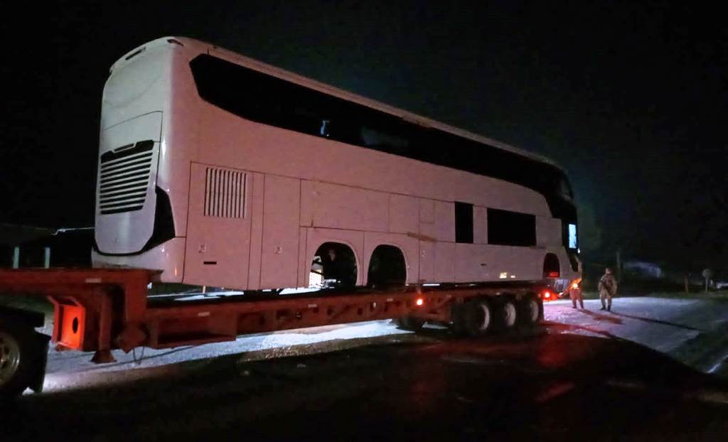 El reporte indica que se aseguraron dos envoltorios con las características propias de la cocaína que eran trasladados en un autobús color blanco, el cual era remolcado por un tractocamión marca Freightliner, con placas 49-AU-5D.