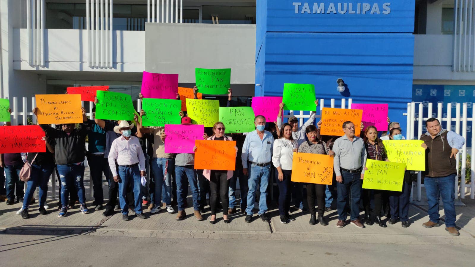 CIUDAD VICTORIA, TAM.- Ciudadanos, Síndicos y Regidores del municipio de Ocampo acudieron al Comité Directivo Estatal del PAN en esta capital y presentaron de manera formal su renuncia a este instituto político ante el alejamiento que han tenido por parte de su dirigente Luis Rene Cantú Galván y del alcalde de ese municipio.
