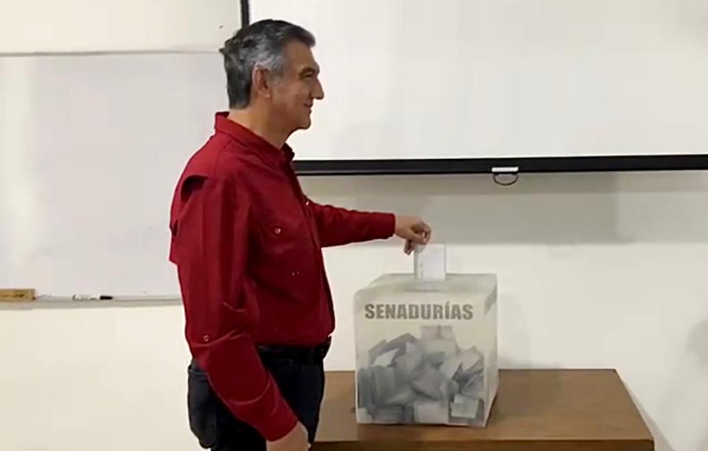 Ciudad Victoria, Tamaulipas 19 de febrero de 2023.- El gobernador de Tamaulipas Américo Villarreal Anaya, acudió esta tarde a ejercer su derecho al voto, en la elección extraordinaria para senador y señaló que la jornada electoral, se realiza con tranquilidad en todo el Estado.