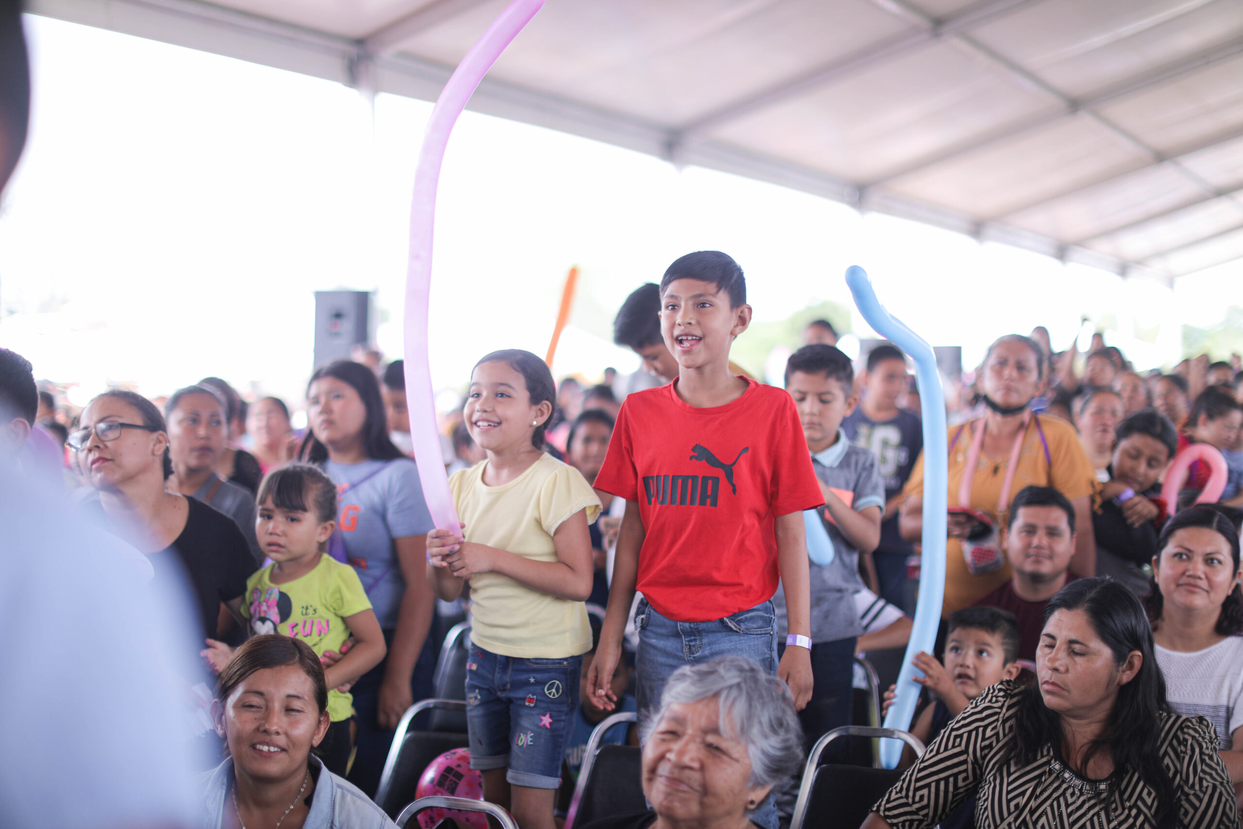 Ante siete mil asistentes, el festejo inició desde temprana hora con un festival artístico y la rifa de regalos, así como la entrega de lapiceras a los beneficiaros inscritos en el Programa de Desayunos Escolares de los niveles de Preescolar y Primaria.