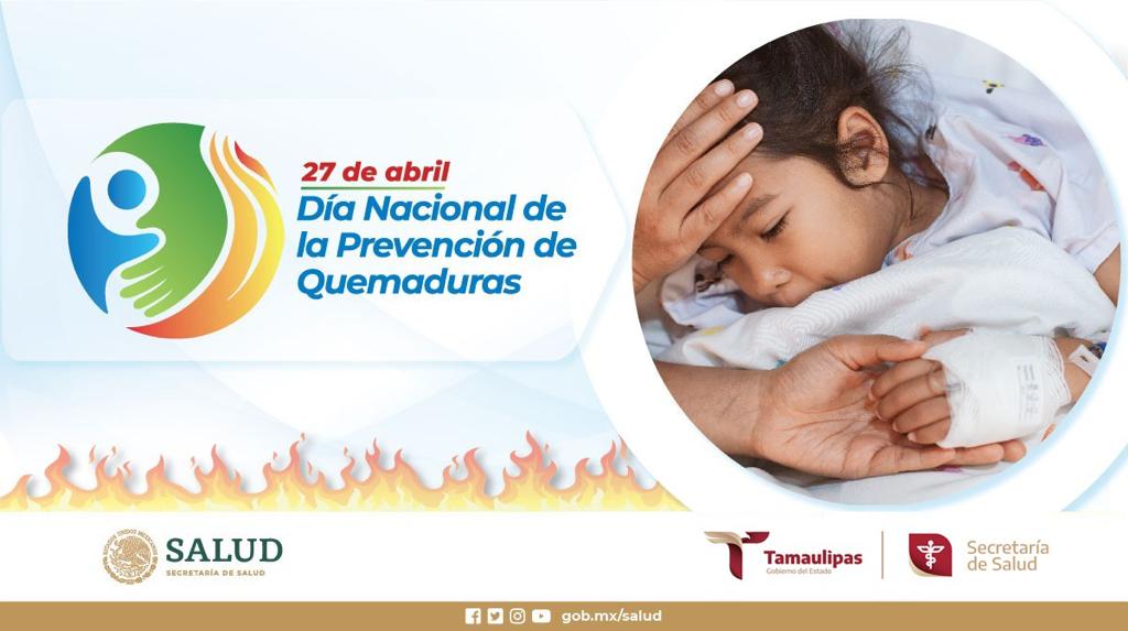 Ciudad Victoria, Tamaulipas. Abril 27 de 2023.- En el marco del “Día Nacional de la Prevención de Quemaduras”, es necesario fortalecer e impulsar acciones que prevengan este tipo de accidentes que afectan principalmente a niñas, niños y adolescentes por lo que la Secretaría de Salud hace un llamado social a madres, padres, cuidadores y maestros a tomar consciencia de lo que esto representa.