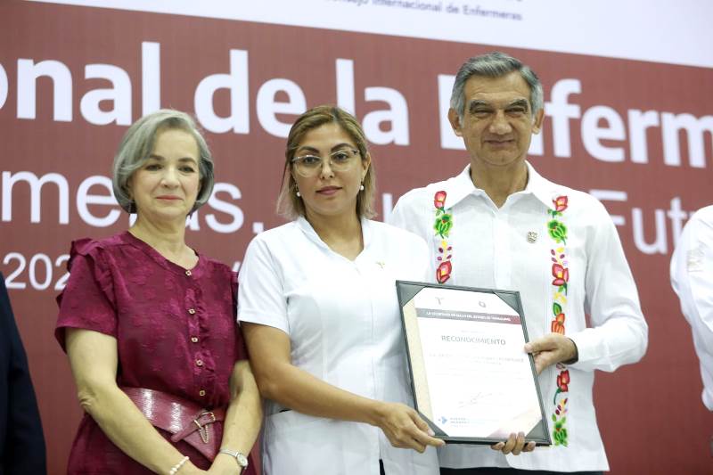 Durante este evento, el mandatario estatal hizo un reconocimiento a la enfermera Irma Barragán Alvarado, quien fue designada como subsecretaria de Enfermería y también destacó que dos enfermeras han sido nombradas subdirectora del Hospital Infantil de Tamaulipas y directora de un Centro de Salud en el municipio de Padilla; Julissa Machuca y María Elena Escobar respectivamente.