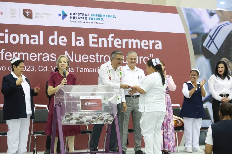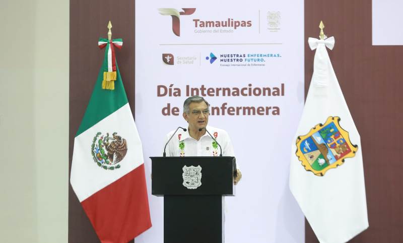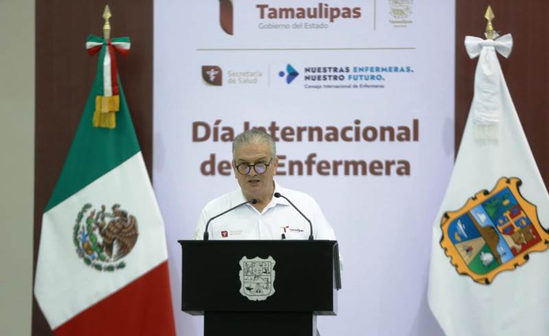 En el marco del Día Internacional de la Enfermería y durante un evento realizado en el Polyforum Victoria, acompañado de la presidenta del DIF Tamaulipas, María Santiago de Villarreal y del secretario de Salud, Vicente Joel Hernández Navarro, dijo que la enfermería en Tamaulipas tendrá el lugar que le corresponde, ya que es una profesión más en el ámbito de la salud.