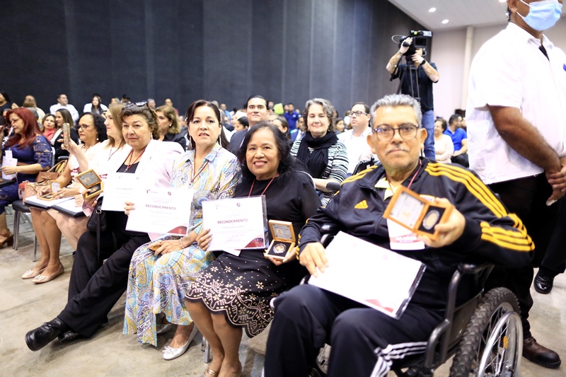 “Las y los tamaulipecos, tenemos en la mayor estima la vocación y el compromiso que históricamente han desplegado maestras y maestros para que esta tierra sobresalga en el escenario nacional como una de las entidades con la más sólida y arraigada tradición magisterial y educativa”, expresó Villarreal Anaya al encabezar, en el Polyforum Victoria, la entrega de preseas a 743 docentes con 30 y 40 años de servicio magisterial.