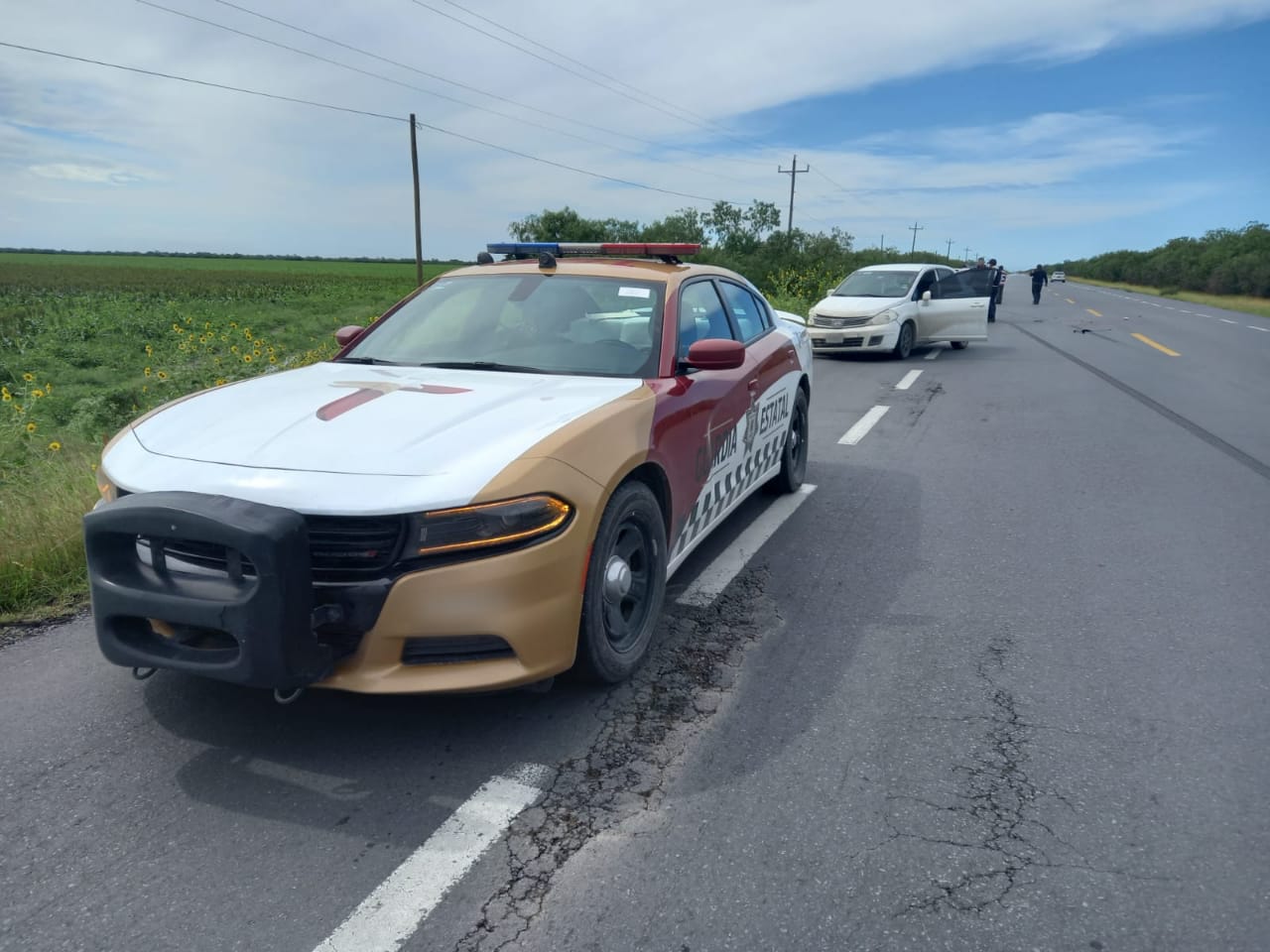Reynosa, Tamaulipas.– Durante los recorridos de seguridad y vigilancia que el personal de la Guardia Estatal realiza en la Carretera Federal 97 Reynosa-San Fernando, se brindó apoyo a un choque ocurrido a la altura del kilómetro 57.