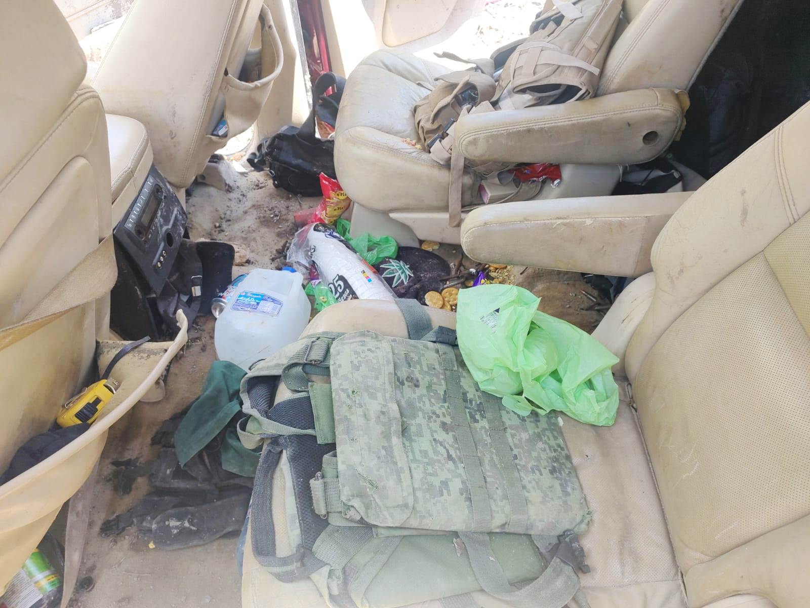 Los infractores huyeron entre la maleza dejando abandonado un vehículo Cadillac Escalade con blindaje en la parte posterior.