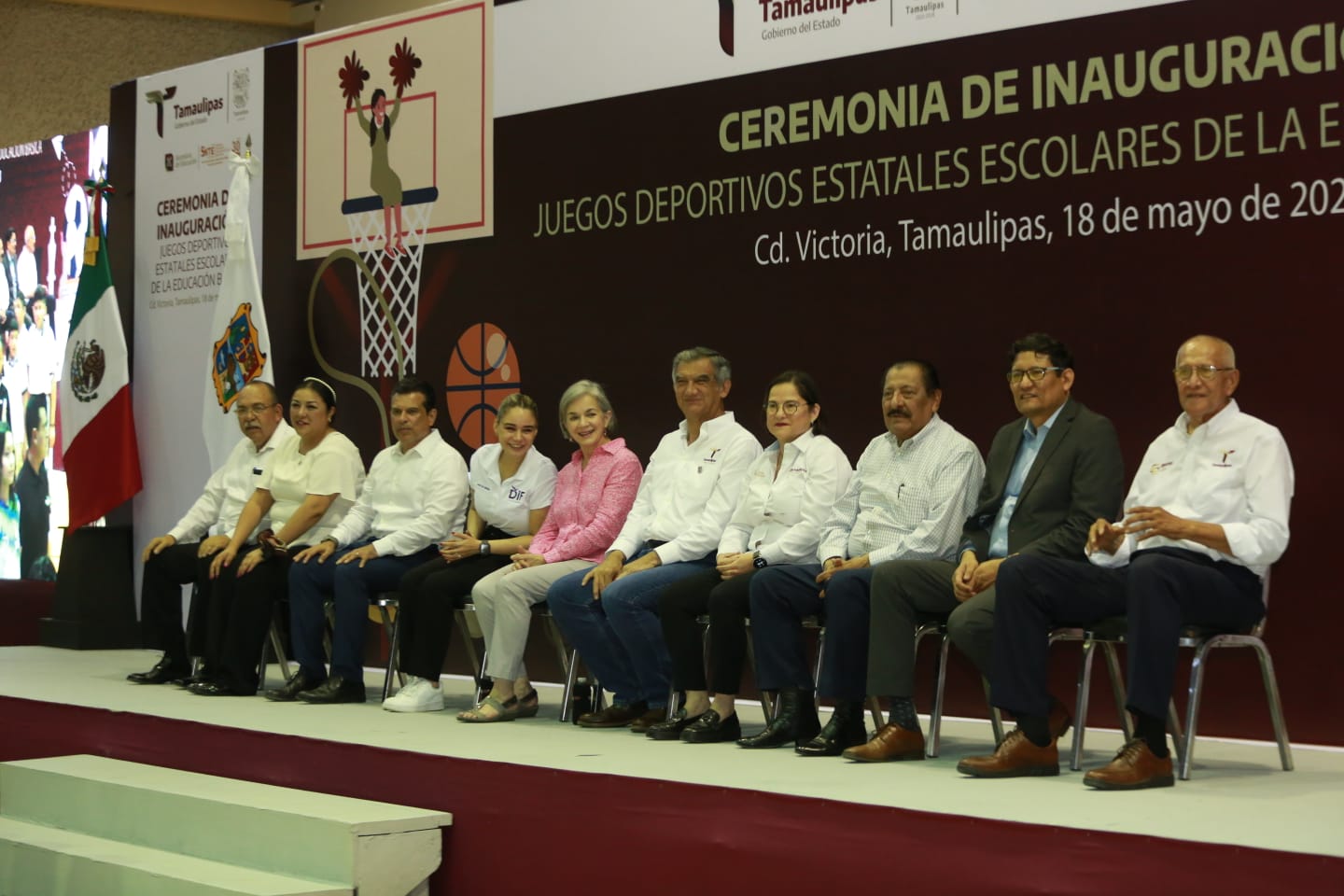 Acompañaron al gobernador en el presidium, el alcalde Victoria, Eduardo Gattás Báez y su esposa Lucía Rodríguez de Gattás; el dirigente de la Sección 30 del SNTE, Arnulfo Rodríguez Treviño; el diputado Juan Román Vital; así como Saraí Claudia Valdez Ramírez, encargada de la Oficina de Representación de la SEP en Tamaulipas; Jorge Miguel, Cota Katzenstein, representante del CEN del SNTE y el director del Instituto del Deporte, Manuel Raga Navarro.
