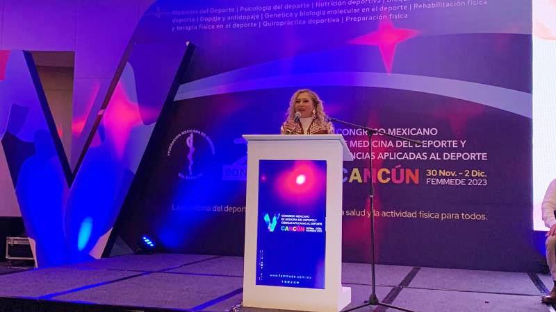 Verónica Loredo Hernández, subsecretaria de Turismo en representación del secretario, Benjamín Hernández Rodríguez, participó en la recepción de la estafeta durante el evento celebrado en los salones de conferencias del Hotel Live Aqua Cancún. El evento es organizado por la Federación Mexicana de Medicina del Deporte y Ciencias Aplicadas al Deporte FEMMEDE y la CONADE y contó con la presencia de Felipe H. Gómez Ballesteros, presidente de FEMMEDE.