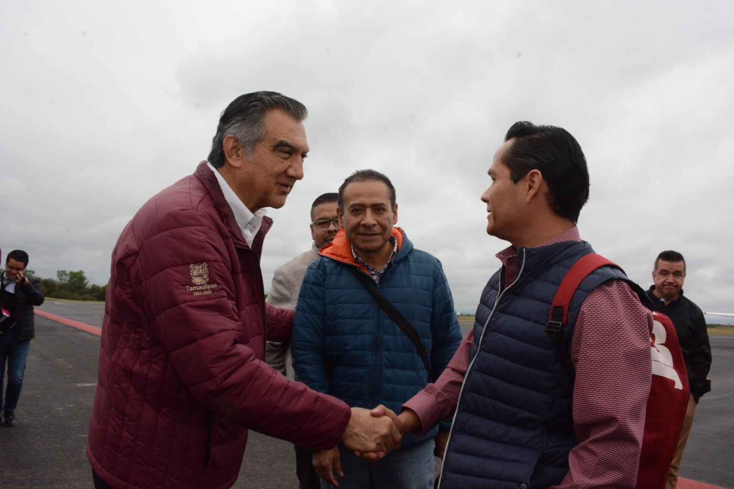 Acompañado por el secretario de Turismo del estado, Benjamín Hernández Rodríguez y los directivos del aeropuerto, el gobernador saludó personalmente a los 50 pasajeros que descendieron del Embraer 145, que despegó del Aeropuerto Internacional Felipe Ángeles.