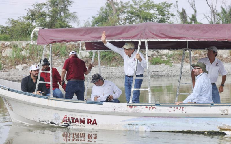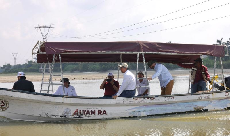 Acompañado por Raúl Quiroga Álvarez, secretario de Recursos Hidráulicos, el gobernador partió en lancha desde el parque Fray Andrés del Olmos para después navegar por los diversos canales, hasta llegar al cauce del río Tamesí, el cual sigue incrementando su nivel gracias a los escurrimientos de los ríos Guayalejo y Tampaón.