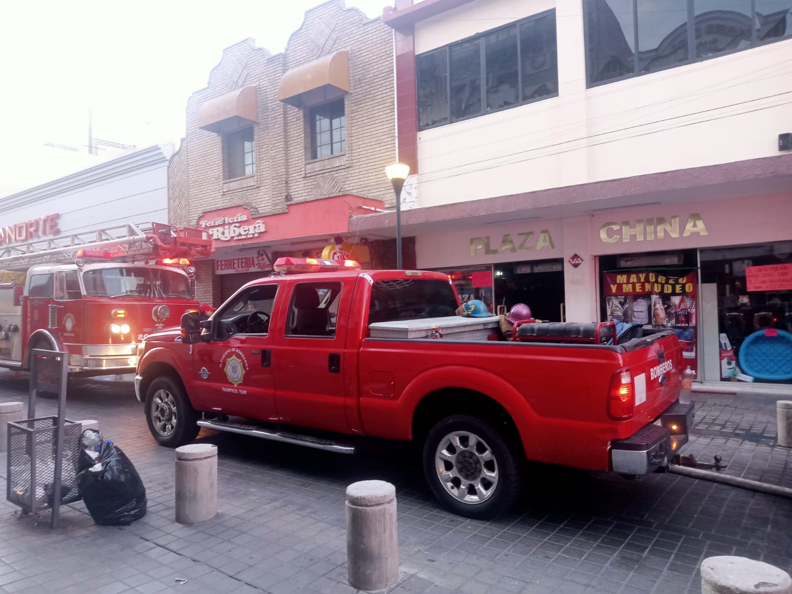 Tampico, Tamaulipas.-Un incendio registrado al interior de la negociación conocida como Plaza China ubicada sobre la calle semi peatonal Carranza en la zona centro de Tampico, originó la movilización de elementos de bomberos de Tampico y Ciudad Madero.