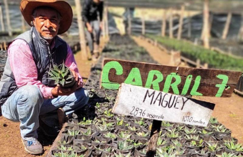 Detalló que también se trabaja en la germinación de semillas de diversas especies de árboles que son utilizados para reforestar áreas que se han perdido, con la finalidad de recuperar espacios para reintroducir los magueyes que se están produciendo.