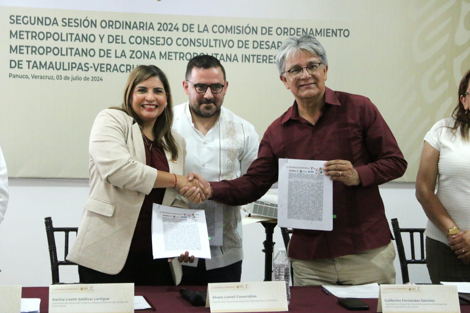 Como parte de la reunión, también se firmó el convenio de coordinación y se designaron al presidente y secretario técnico del Consejo Consultivo de Desarrollo Metropolitano de la Zona Metropolitana Interestatal Tamaulipas-Veracruz, cargos asumidos por Edgardo Jonathan Suárez Domínguez y David Marcelo Granados Ramírez, respectivamente.
