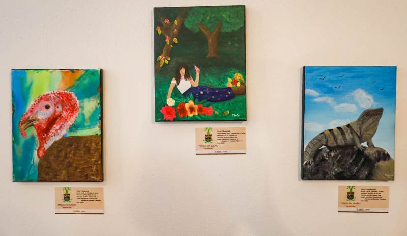 A su llegada al teatro, el público, entre el cual se encontraban la secretaria de Cultura del Gobierno de México, Alejandra Frausto Guerrero, y el gobernador de Tabasco, Carlos Manuel Merino Campos, además de familias de los Semilleros, fue recibido por niñas, niños y jóvenes del Semillero Tamborileros Agalambarileros, que crearon el ambiente ideal para realizar el recorrido por la exposición “Raíces del Edén”, compuesta por 30 obras elaboradas por participantes de los Semilleros Creativos de Pintura en Centla y Paraíso.
