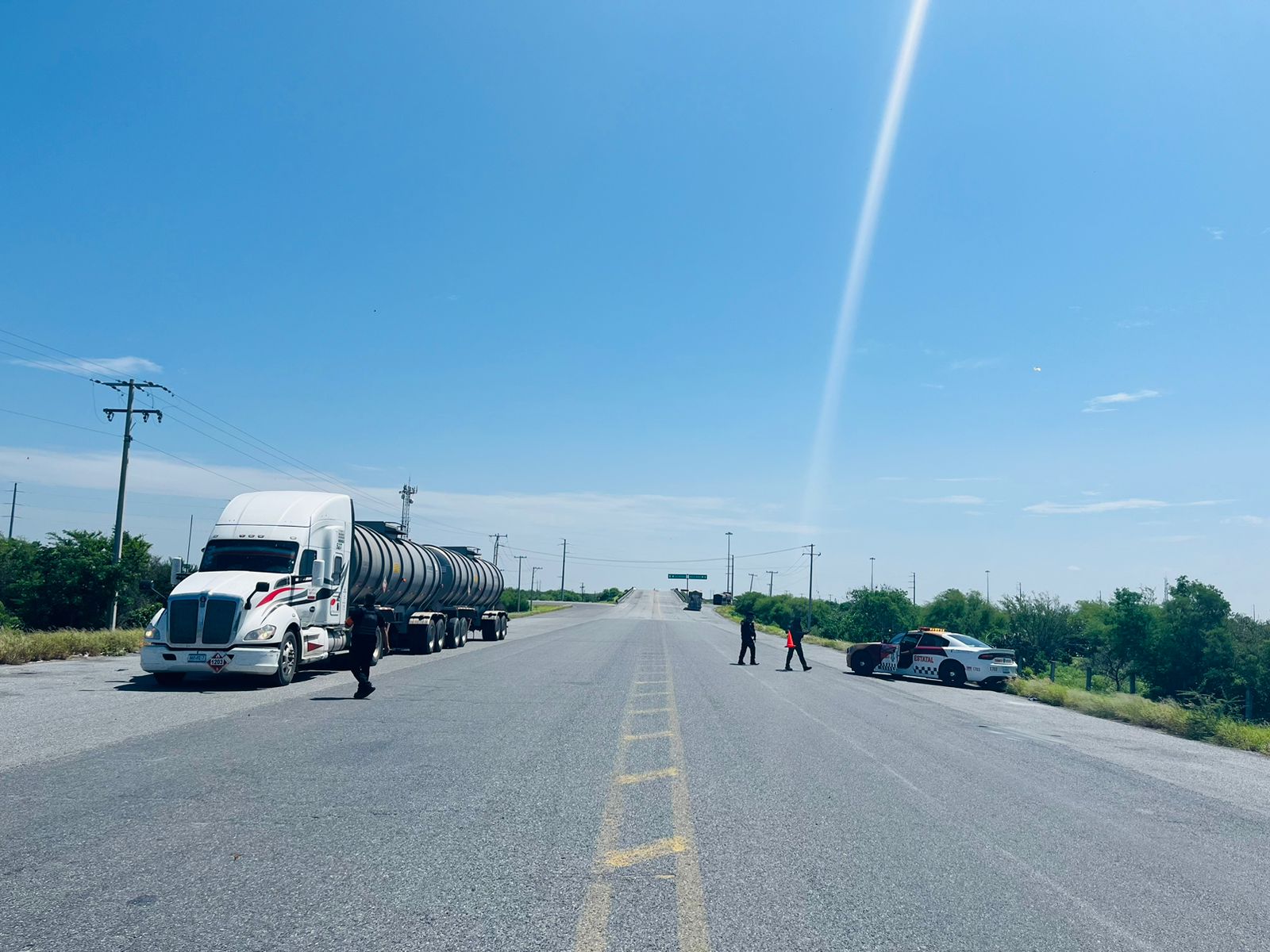 Ciudad Victoria, Tamaulipas.- Al realizar labores de proximidad y prevención a la altura de la carretera Juan Capitán-“El Chihue”, personal de la Dirección de Tránsito Estatal realizó el aseguramiento de un tractocamión que presuntamente trasladaba hidrocarburo crudo.