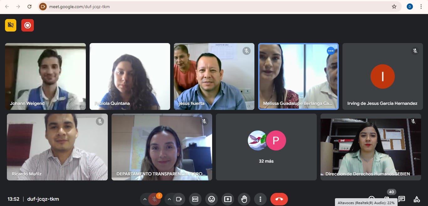 La capacitación fue a través de la plataforma Google Meet, dirigida a personal de la Secretaría General de Gobierno, de Seguridad Pública, Secretariado Ejecutivo del Sistema Estatal de Seguridad Pública, Salud, Educación, Trabajo y Previsión Social, Fiscalía General de Justicia del Estado, Instituto Tamaulipeco para los Migrantes, Instituto de las Mujeres, Comisión Estatal de la Atención a Víctimas y Sistema DIF Tamaulipas.