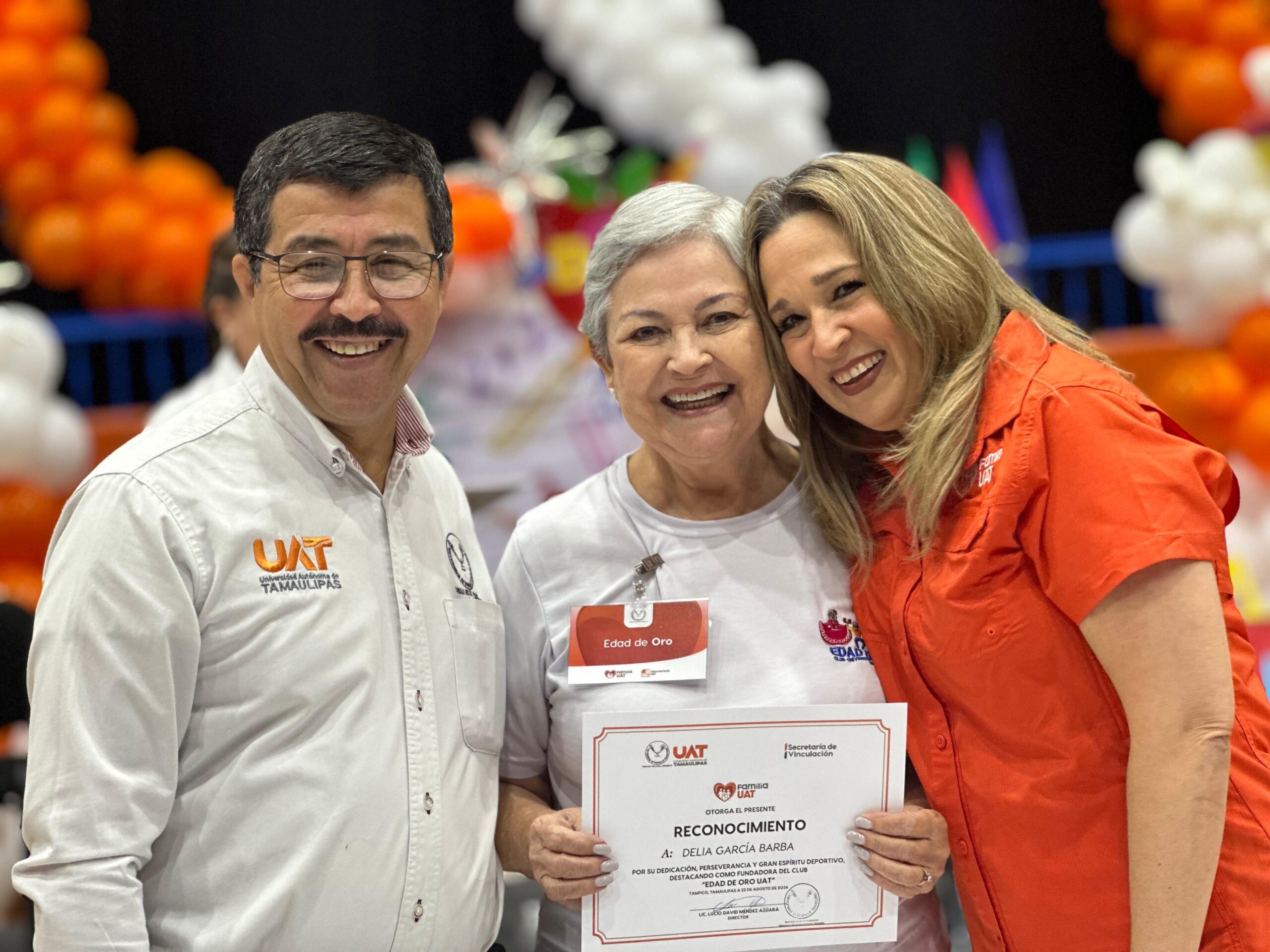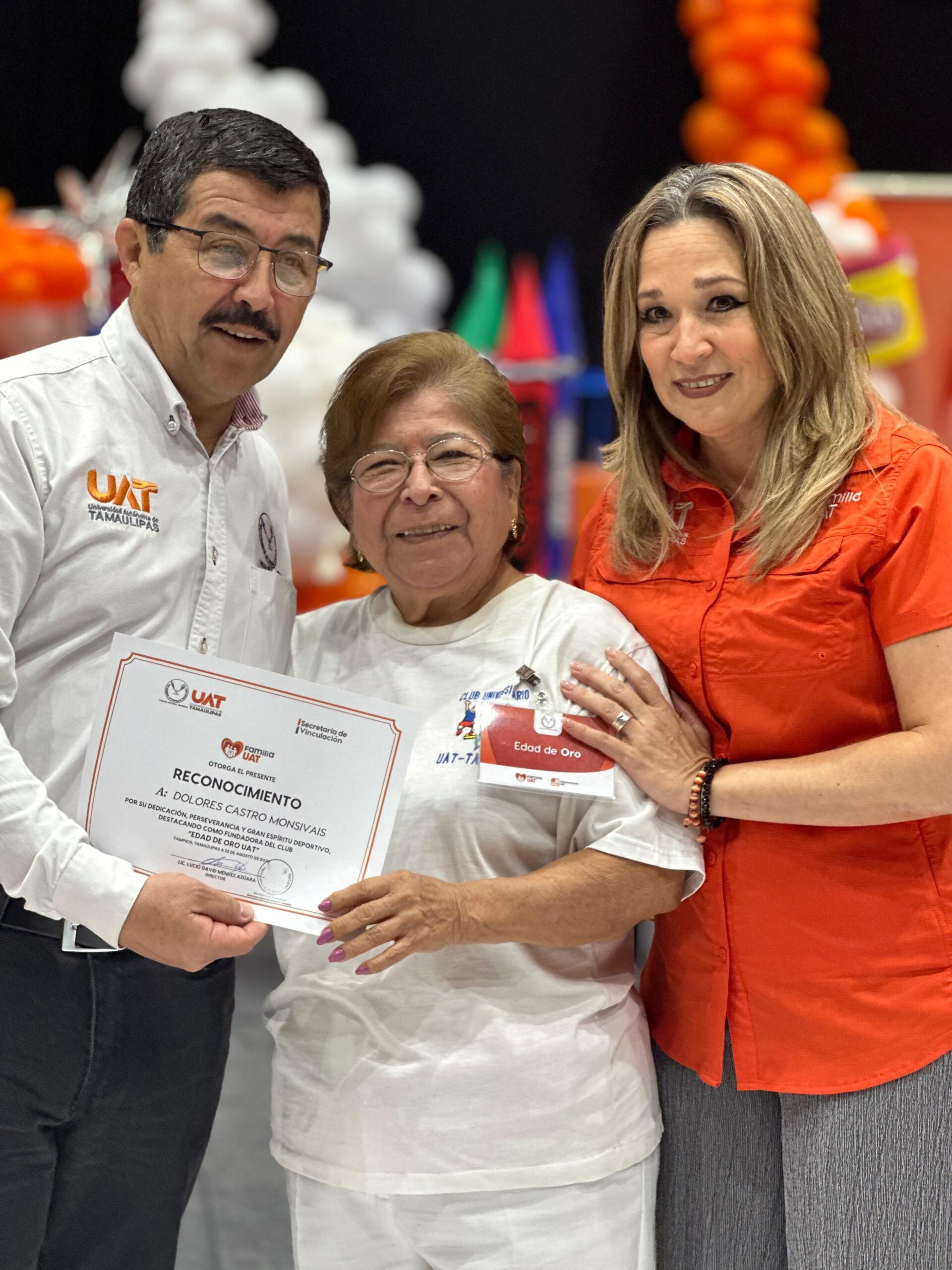 En este marco, el MVZ Dámaso Anaya y la Lic. Isolda Rendón otorgaron reconocimientos a los fundadores del Club de la Edad de Oro del Gimnasio Multidisciplinario de Tampico, por su valiosa contribución y su constante apoyo a las iniciativas universitarias.