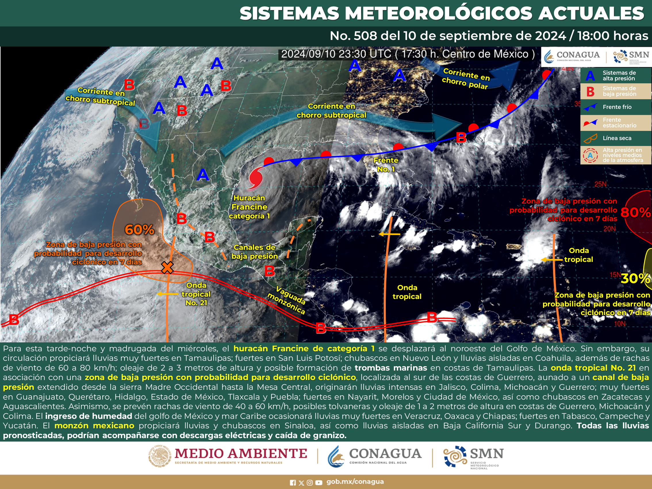 Francine estaba a unas 563 kilómetros de Morgan City, Luisiana, el martes por la noche, según el Centro Nacional de Huracanes. Anteriormente, el centro emitió una alerta de huracán para el área de Nueva Orleans mientras la trayectoria del pronóstico se desplazaba ligeramente hacia el este.