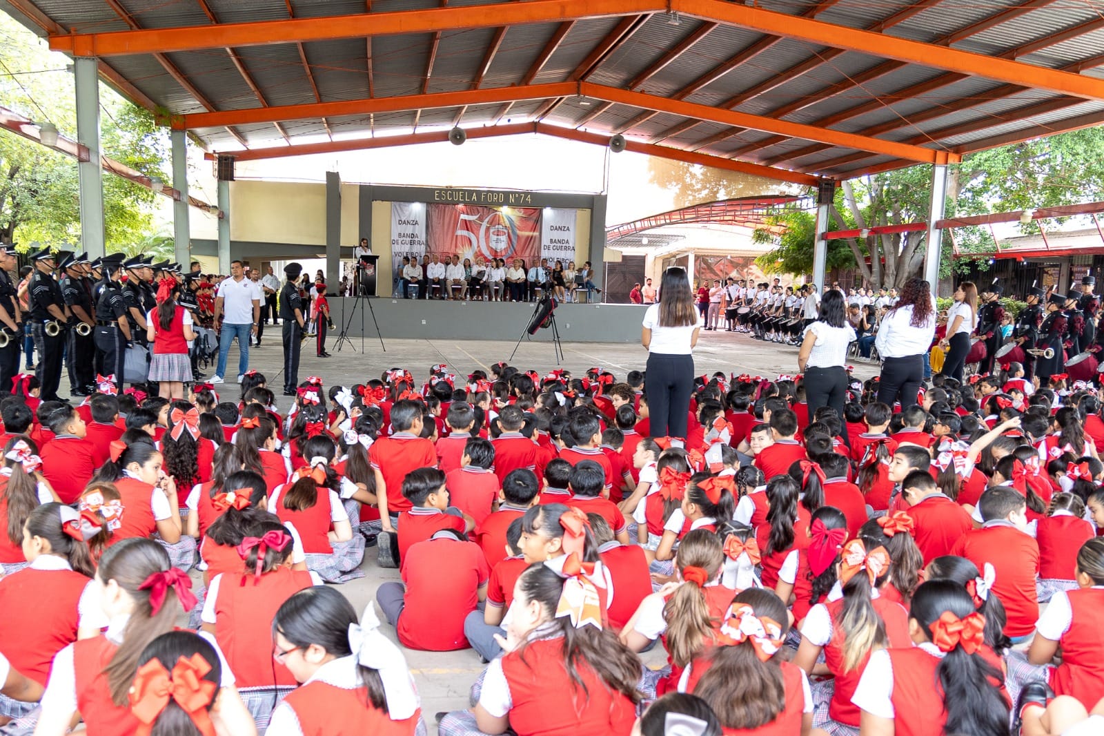 Ciudad Victoria, Tamaulipas.– En cinco décadas de existencia, la Escuela Primaria ‘Ford 74’ se ha distinguido por ser un ejemplo exitoso de disciplina, organización y educación de calidad, superando los retos que ha tenido enfrente, aseguró Lucía Aimé Castillo Pastor, secretaria de Educación de Tamaulipas, al encabezar la celebración del 50 aniversario de la institución.