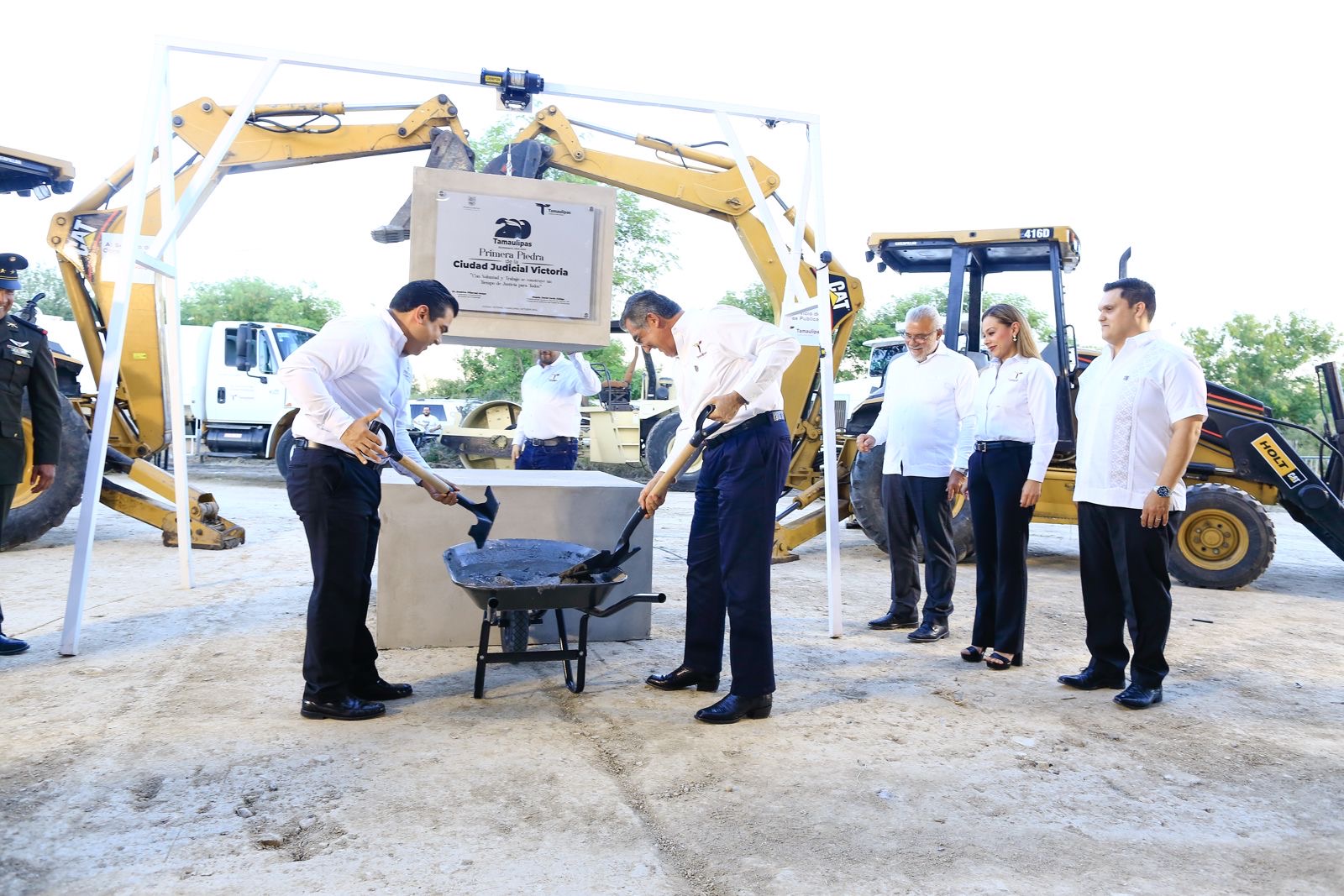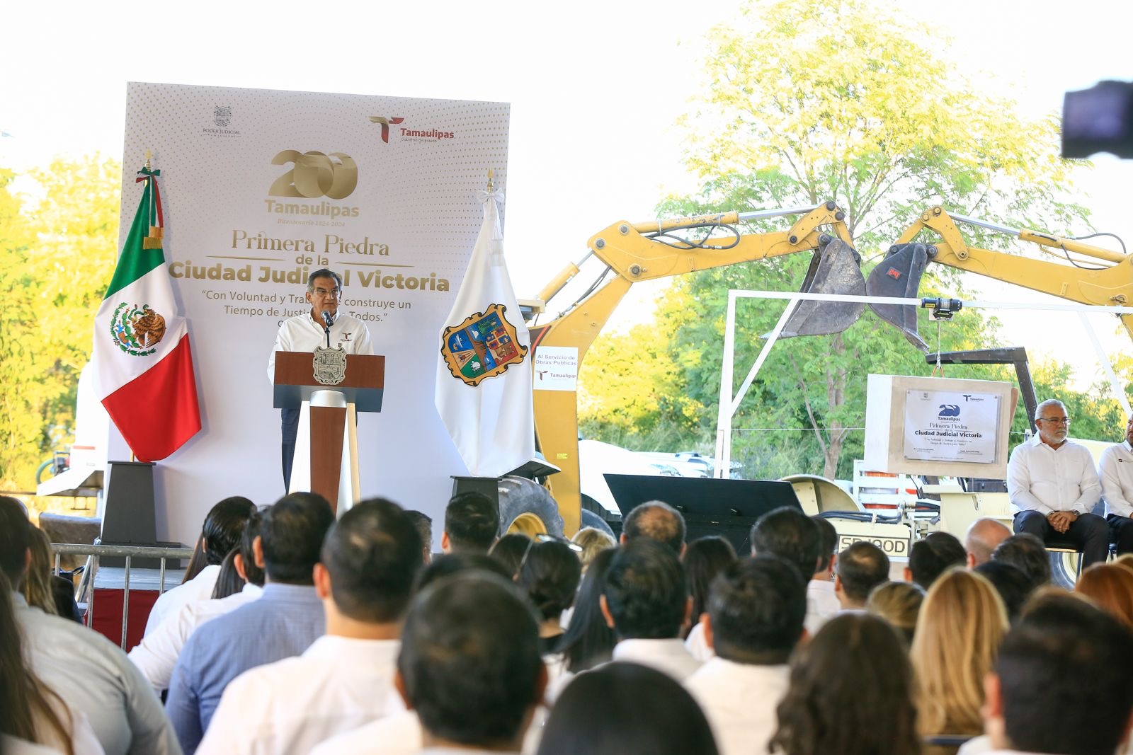 Ciudad Victoria, Tamaulipas.- Al colocar la primera piedra de la construcción de la nueva Ciudad Judicial en Victoria, que tendrá una inversión de 275 MDP, el gobernador Américo Villarreal Anaya, reiteró todo su apoyo para la modernización y dignificación de las condiciones materiales para el desempeño de la delicada misión de impartir justicia.