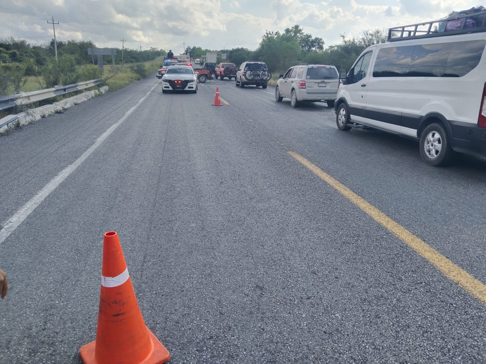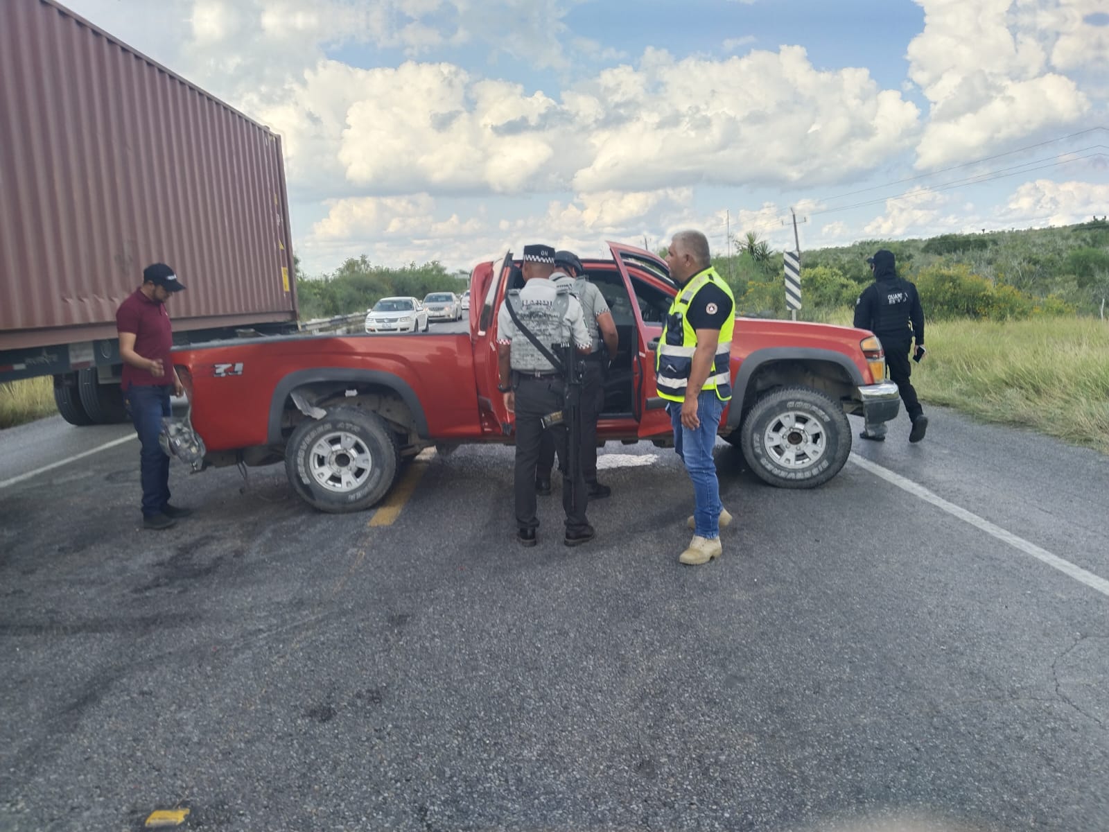 Mientras que el conductor del otro vehículo se encontraba a la orilla de la carretera cuando fue impactado por una camioneta.