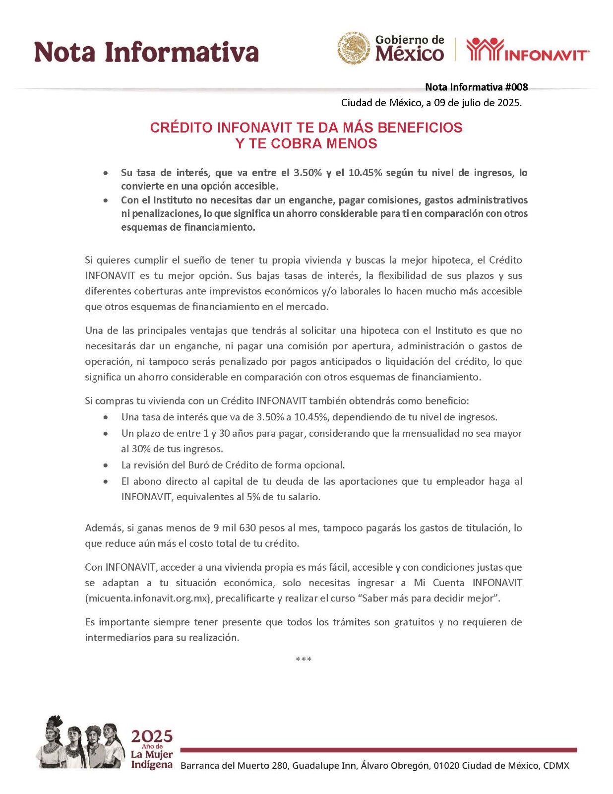Ciudad de México, a 09 de julio de 2025.- Su tasa de interés, que va entre el 3.50% y el 10.45% según tu nivel de ingresos, lo convierte en una opción accesible.