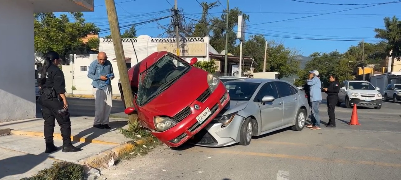 Ciudad Victoria, Tamaulipas.– Un violento accidente de tránsito encendió la alarma esta tarde en el cruce de Francisco Javier Mina y Cristóbal Colón (Calle 9), cuando un Renault Clio rojo terminó impactado brutalmente por un Toyota Corolla gris, lo que provocó que el compacto se estrellara contra un poste de Teléfonos de México.