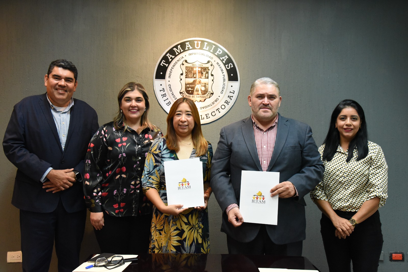 Estuvieron presentes en esta reunión por parte del IETAM, la Consejera Mayra Gisela Lugo Rodríguez, el Consejero Presidente Juan José Guadalupe Ramos Charre, la Directora de Igualdad de Género y No Discriminación Lidda Delgado Cortina; y por parte del TRIELTAM, el Magistrado Presidente René Osiris Sánchez Rivas y la Secretaria Técnica del Pleno, Jessica Betancourt Rangel.
