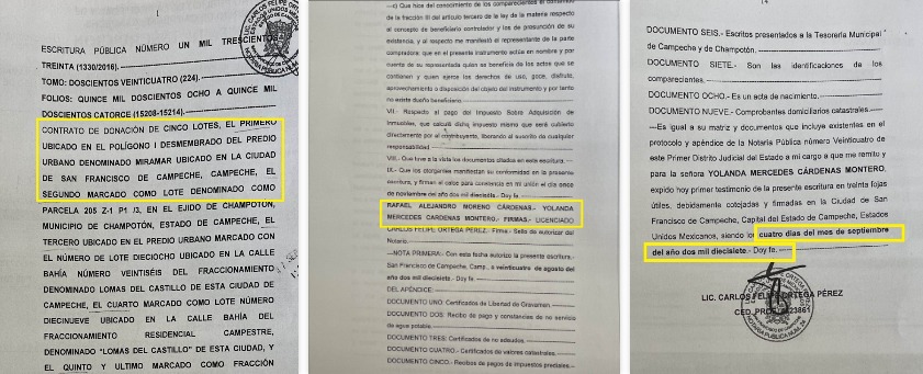 De acuerdo con el decreto publicado en el Diario Oficial del Estado, tres de los terrenos expropiados están a nombre de Yolanda Mercedes Cárdenas Montero, madre de Moreno Cárdenas, y de su arquitecto de cabecera, Juan José Salazar Ferrer.