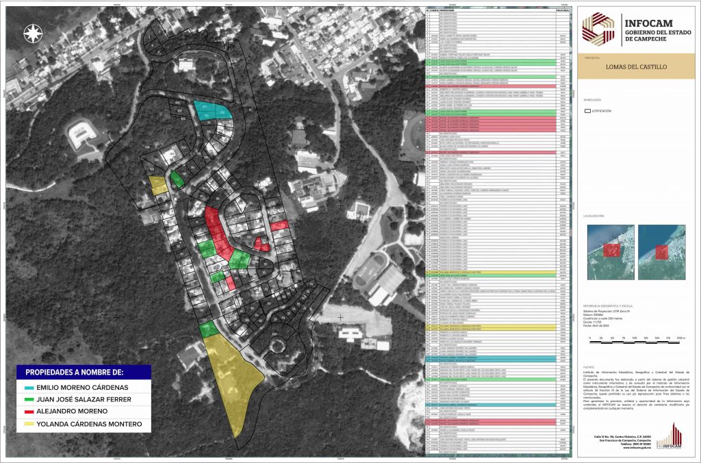 En junio de 2022, la organización Mexicanos contra la Corrupción y la Impunidad (MCCI) reveló que la madre, el hermano (Emigdio Gabriel Moreno Cárdenas) y el arquitecto de confianza de Alito acumulaban en conjunto 43 propiedades en Campeche, de las cuales 22 están dentro de Lomas del Castillo.