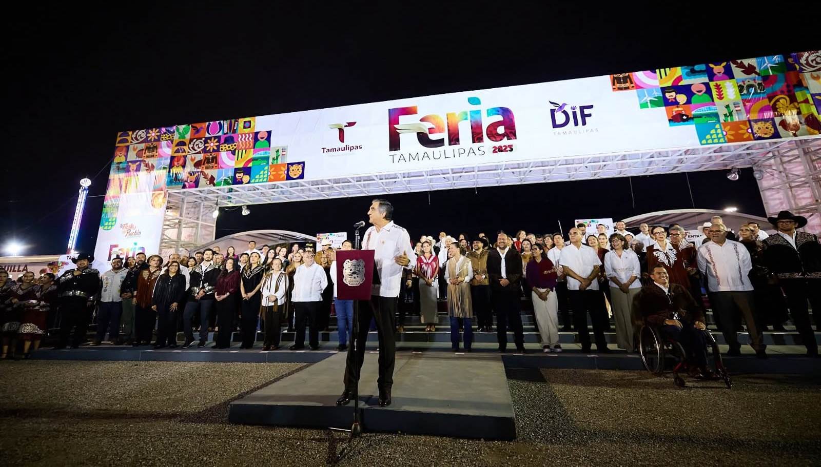 “Como usted lo instruyó, señor gobernador, nuestra feria es un encuentro con nuestra identidad, un escaparate para el talento de nuestros emprendedores, artistas, gastronomía tradicional, productores, ganaderos, y tantas y tantos tamaulipecos que con orgullo vienen desde nuestras bellísimas regiones a compartir lo mejor de su tierra”, mencionó.