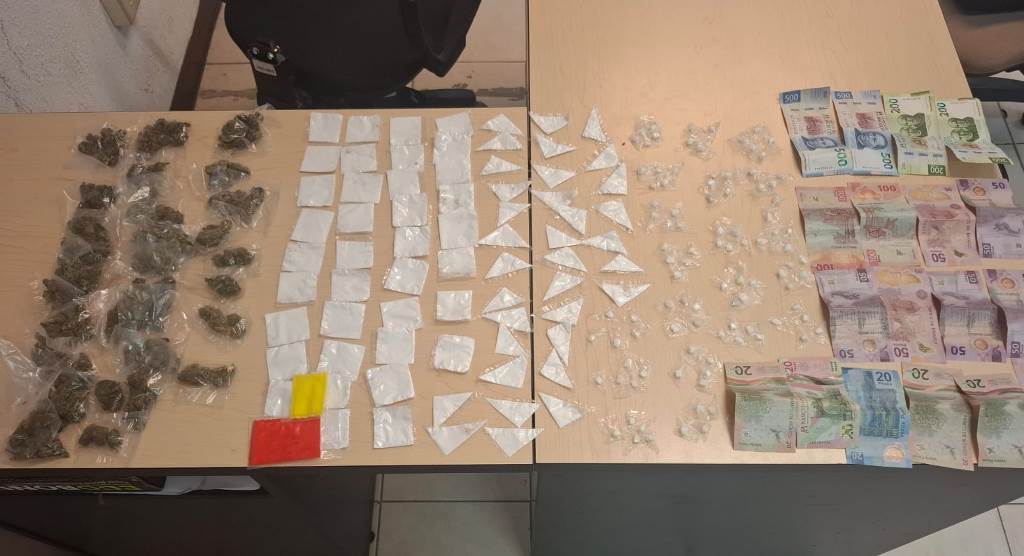 Los agentes arribaron al lugar tras recibir el reporte sobre presunta venta de narcóticos y, al realizar una inspección preventiva al sujeto, encontraron entre sus pertenencias: