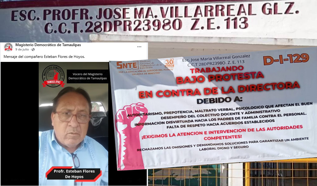 Soto La Marina, Tamps. – Un nuevo conflicto estalla en el sistema educativo de Tamaulipas, luego de que el profesor Esteban Flores de Hoyos denunció públicamente que la Subsecretaria de Educación Básica, Nora Hilda de los Reyes, continúa hostigando a la directora de la primaria José María Villarreal González por negarse a participar en presuntos actos de corrupción.