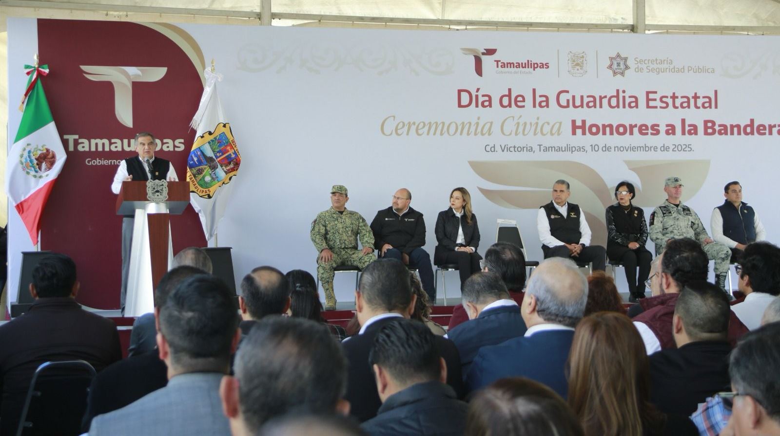 Al presidir la ceremonia cívica de honores en el complejo estatal de Seguridad Pública, en el marco de la celebración del Día de la Guardia Estatal, el gobernador destacó que la presencia de la corporación se puede ver y constatar en las carreteras, en zonas urbanas y en las diferentes regiones de la entidad, «como en una labor diaria, sostenida y continua mejorando nuestros niveles de indicadores de seguridad”, sostuvo.