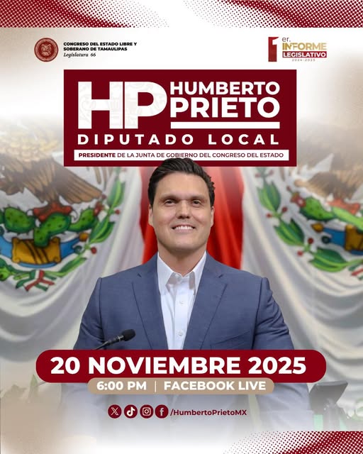 “Este 20 de noviembre presentaré los resultados de este primer año como Diputado y Presidente de la Junta de Gobierno del Congreso del Estado. Te invito a acompañarme y conocer los avances por Tamaulipas”, expresó.