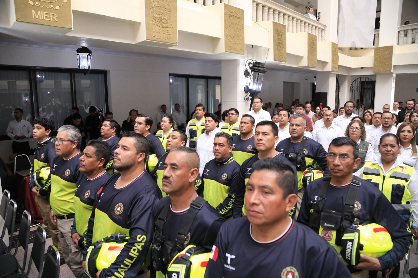 Aquí, el secretario general de Gobierno, Héctor Joél Villegas González destacó que el gobernador Villarreal Anaya, “ha fortalecido esta noble institución con insumos, vehículos y equipo para que el personal esté en condiciones de salvaguardar el bienestar de las y los tamaulipecos, sus bienes y su entorno”, además de que el personal de la Coordinación de Protección Civil, se capacita permanentemente en la mejora continua de habilidades.