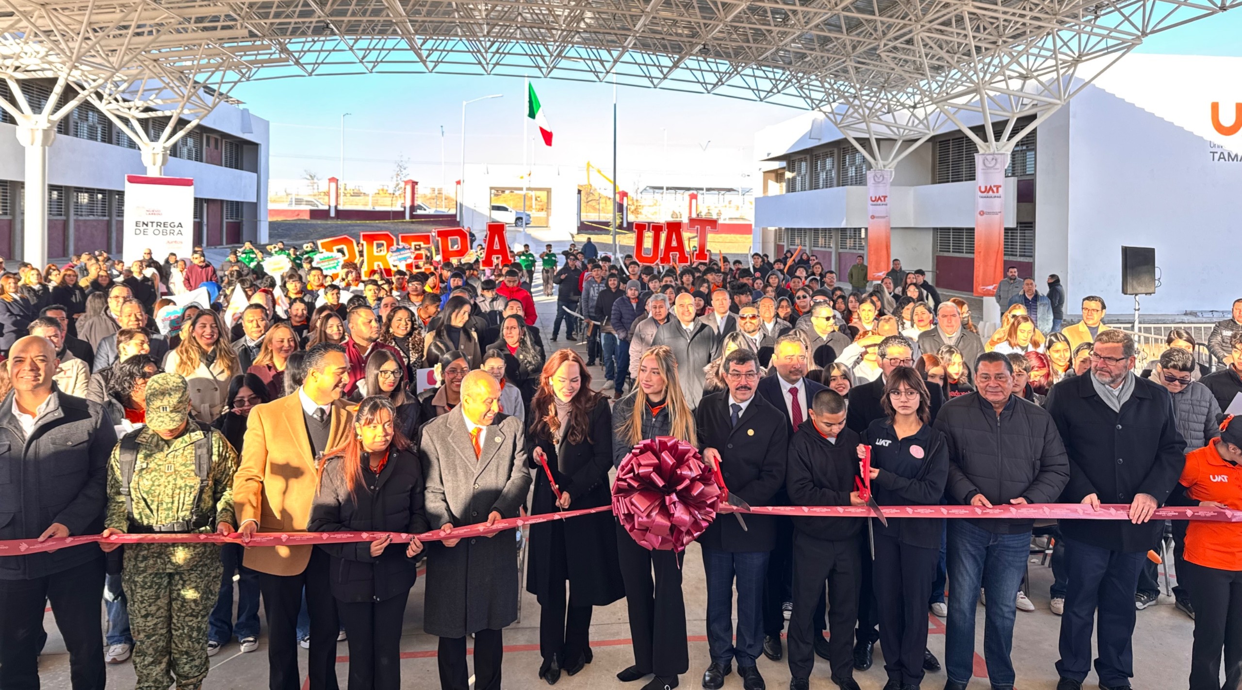 La entrega, realizada en el marco de apertura del ciclo escolar 2026-1 de la UAT, incluyó la techumbre monumental, diseñada para proteger a los estudiantes de las inclemencias del tiempo durante sus actividades al aire libre; así como el estacionamiento, destinado a mejorar la movilidad y el orden dentro del plantel.