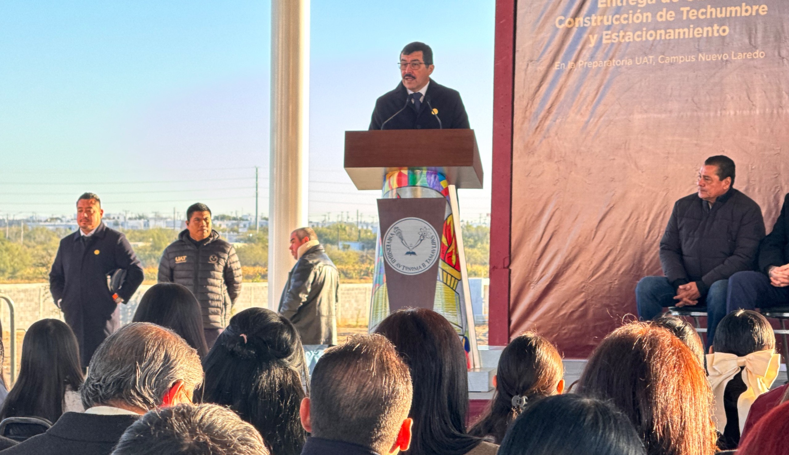 En el marco del inicio del período escolar universitario 2026-1, el rector Dámaso Anaya y la alcaldesa de Nuevo Laredo, Carmen Lilia Canturosas, entregaron la techumbre y el estacionamiento de la Preparatoria de la UAT en esta ciudad fronteriza.