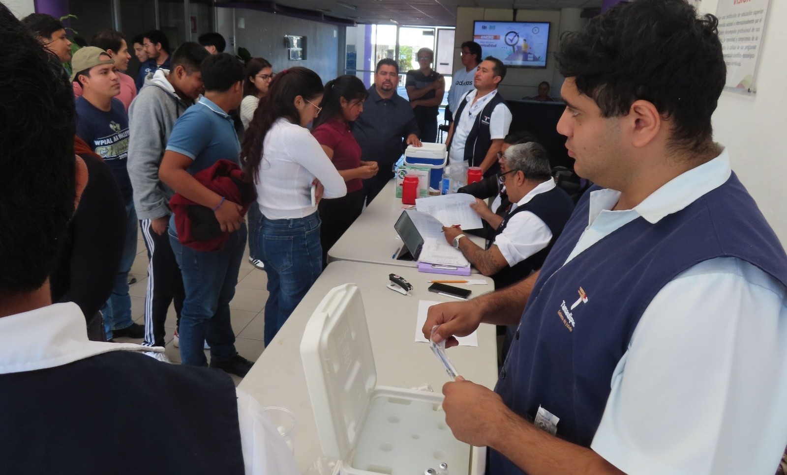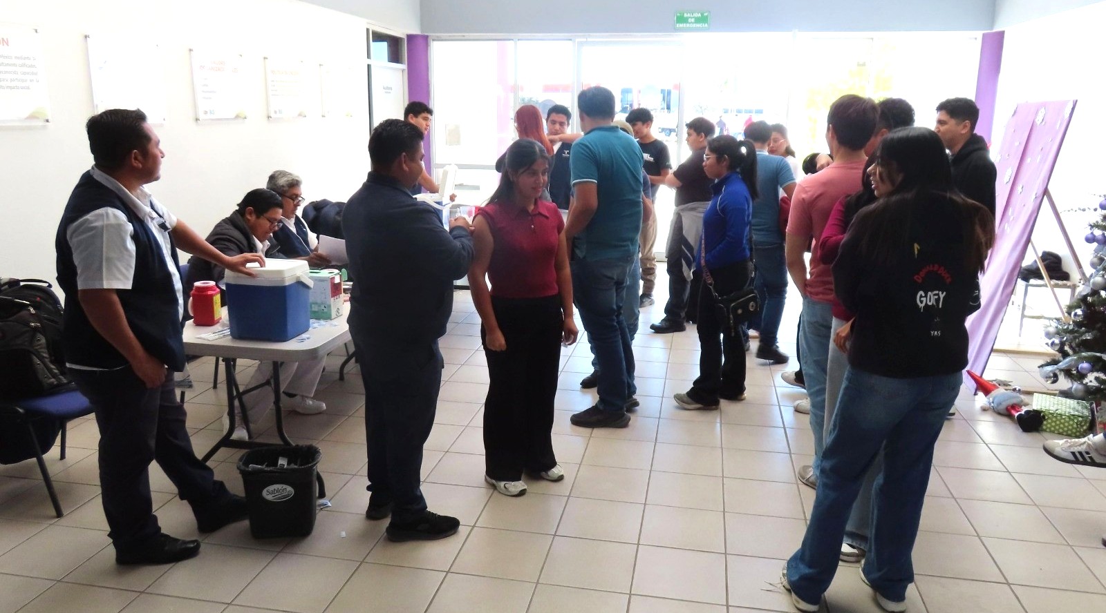 Ciudad Victoria, Tamaulipas.– Con el objetivo de prevenir enfermedades propias de la temporada invernal o aminorar su impacto, estudiantes, docentes y trabajadores administrativos de la Universidad Politécnica de Victoria (UPV) se sumaron a la Primera Jornada de Vacunación del año 2026.