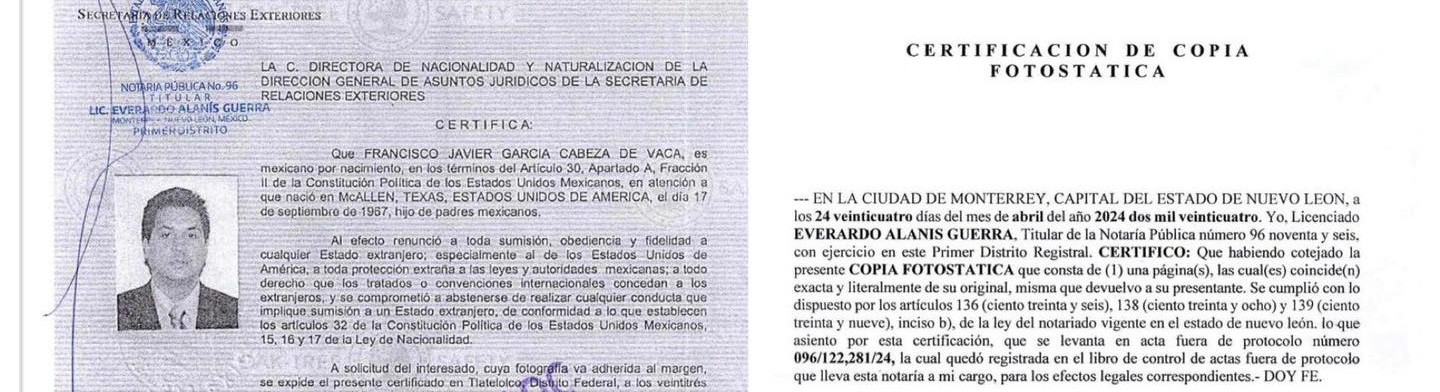 Este documento fue presentado por el propio Cabeza de Vaca durante el proceso legal con el que buscó recuperar su diputación plurinominal, sin éxito, mediante un amparo otorgado por el juez Alvarado, quien fue inhabilitado recientemente, lo que ha generado polémica adicional sobre el caso.