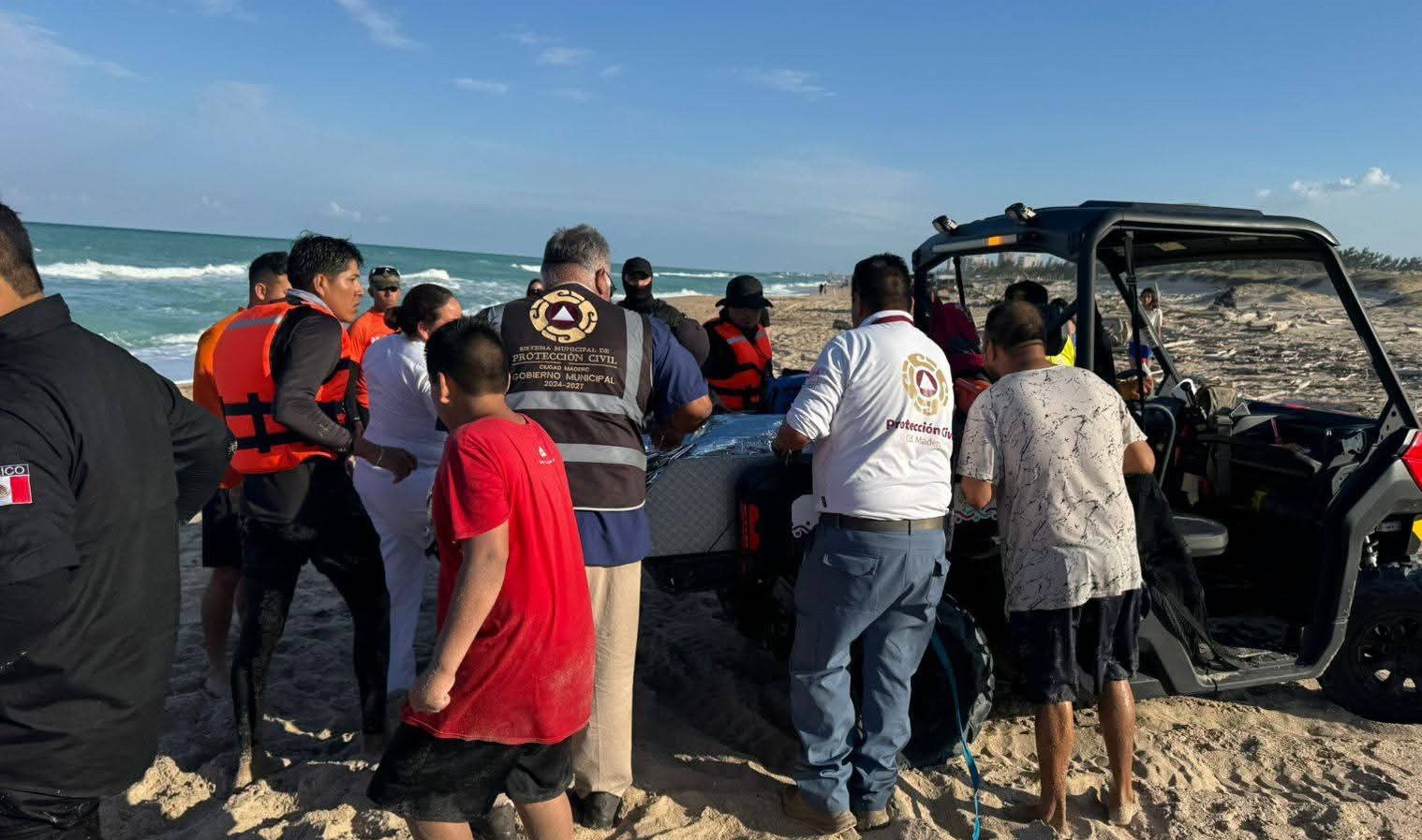 La rápida intervención fue clave. Un Jet-Ski, operado por el guardavidas Francisco “R”, fue desplegado junto con otro elemento que realizaba vigilancia desde la Torre 1 hasta 600 metros al norte del fraccionamiento Velamar, logrando un tiempo de respuesta de apenas ocho minutos, lo que marcó la diferencia entre la vida y la muerte.
