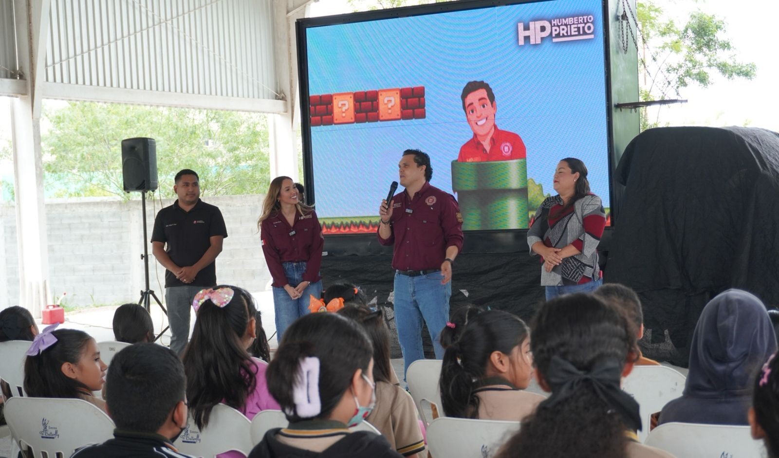 Los alumnos de la escuela primaria Carlos Fuentes Macías de la col. Villa Diamante, así como las familias del fracc. Valle Soleado, recibieron con alegría y agrado la visita del diputado Humberto Prieto Herrera, quien, junto a su esposa Verónica Garza de Prieto, encabezó la función de cine, disfrutando los presentes de un momento de convivencia en el marco de la celebración del Día del Niño.